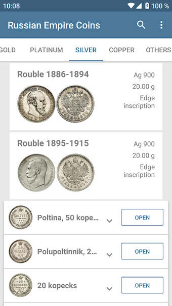 A navegação é simples e intuitiva, permitindo uma busca rápida por todas as moedas disponíveis no catálogo. Os usuários também têm a opção de adicionar notas pessoais, o que torna o aplicativo ainda mais funcional. Ideal para numismatas, comerciantes e caçadores de tesouros, este aplicativo se destaca como uma das melhores opções para quem deseja aprofundar-se no estudo das moedas do período imperial russo.
